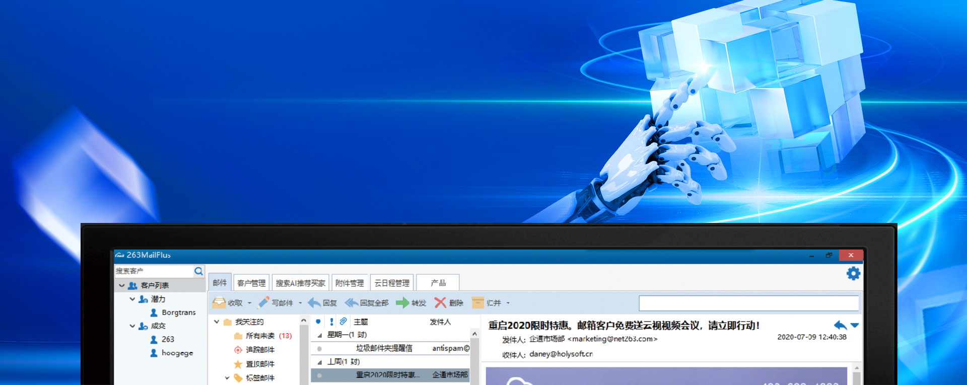 2020年4月1日,与上市公司263企业邮箱,共同推出了263MailPlus邮件客户端,https://www.263.net/download/app/