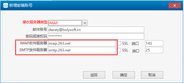 点确定后,自动检测 POP3,IMAP,SMTP服务器
