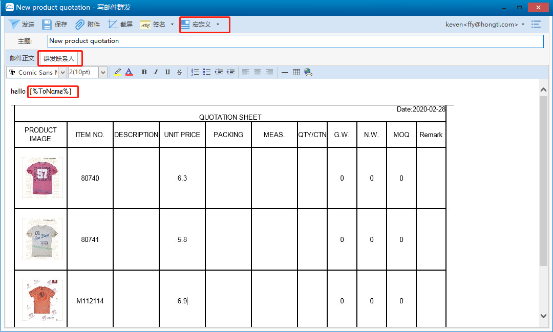 群发邮件:如产品推广,收件人可以通过宏定义,客人收到的邮件后是一对一发送。