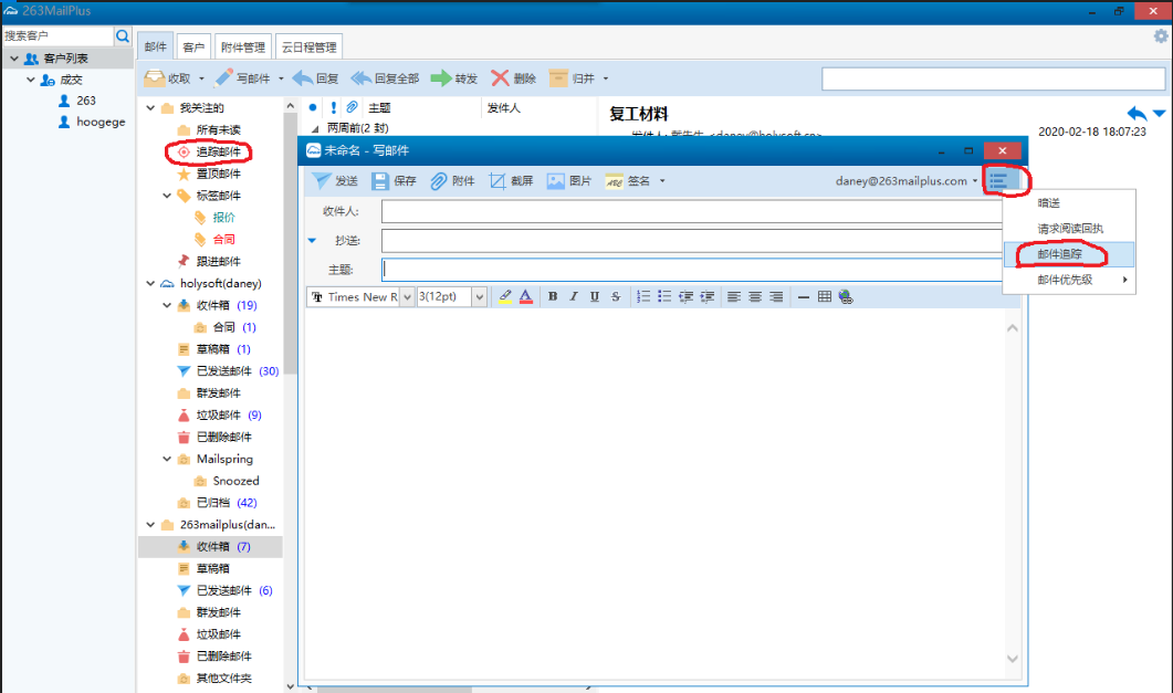 右上角可以设置邮件请求回执,邮件追踪,邮件优先级,暗送等
