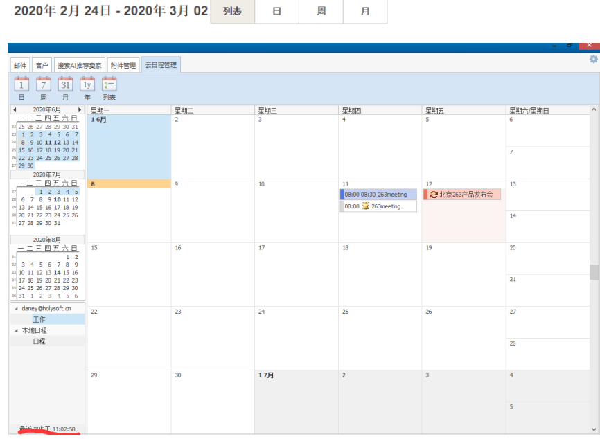 同步263云日程,事件显示方式可以按列表,日,周,月